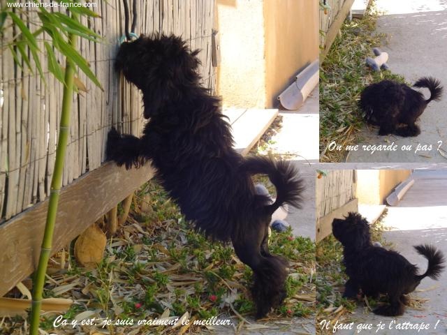 Très dégourdi, très attentif et très intelligent, curieux aussi, tout m'intéresse. Essayez simplement de me suivre, si vous y arrivez! Je suis très très câlin.
